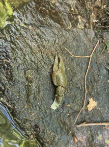 - l’arrivée de l’écrevisse de Californie qui est une concurrente directe et qui, souvent, est porteuse saine de l’aphanomycose (épidémie létale pour l’écrevisse à pattes blanches),