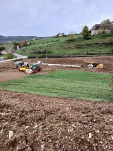 Les terrassements d’ancrage de la digue ont été réalisés, la canalisation permettant de faire transiter le cours d’eau sous l’ouvrage a été posée, la digue peut maintenant être édifiée, si toutefois la météo le permet.